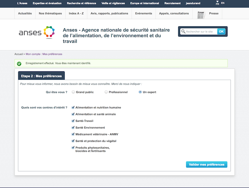 Première interrogation, ce sujet est-il traité par l'ANSES, de manière publique ? Pour le savoir, notre grand reporter Jean Durand est allé s'inscrire sur le site de l'ANSES :